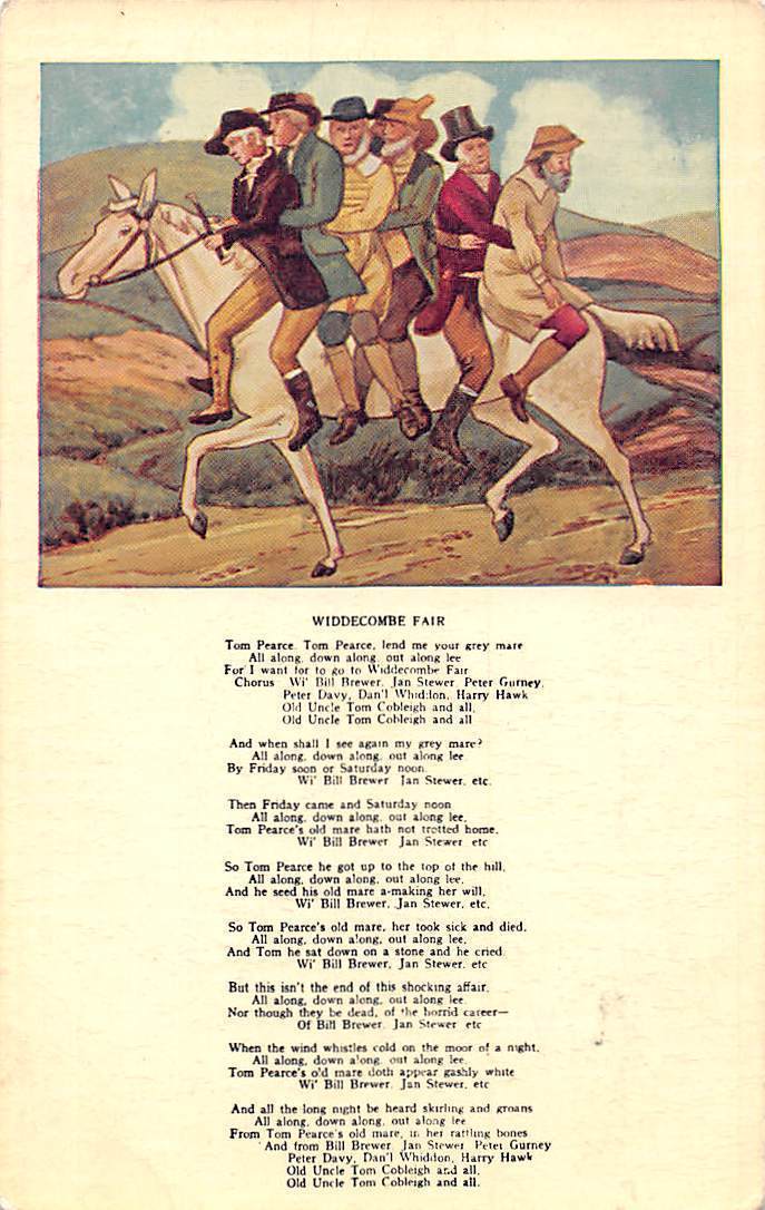 The phrase Uncle Tom Cobley and all is used in British English as a humorous or whimsical way of saying “et al“., often expressing exasperation at a large number of people in a list. The phrase comes from a Devon folk song, “Widecombe Fair“. Below is a picture of the song of the same name.